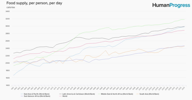 Indeed, far from the famines predicted by the economist soothsayers of yore, food access and food security have been growing steadily across the world for nearly a century. As for the famines we do encounter, the primary causes are not overpopulation or environmental scarcity, but despotic authoritarianism and its attempts to micromanage the human spirit.