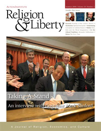 The Acton Institute knows a thing or two about poor fortune in the timing of a publication. An issue of our own Religion & Liberty went to press featuring a cover interview with South Carolina Gov. Mark Sanford right before his international affair became the stuff of tabloids and gossip pages. This interview was in fact the last one in which he gave an in-depth look at his view of faith and public life before his adultery became public, and so even as painful as it might be to have this kind of thing happen as a publisher, it often does in fact serve some journalistic purpose, as a baseline for critique if nothing else.